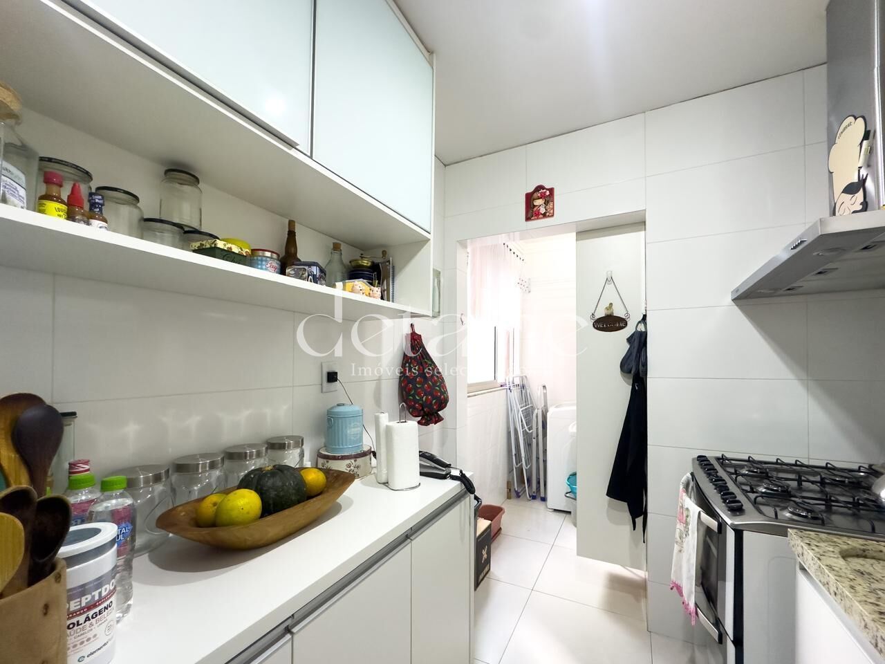 Cozinha e lavanderia com móveis planejados